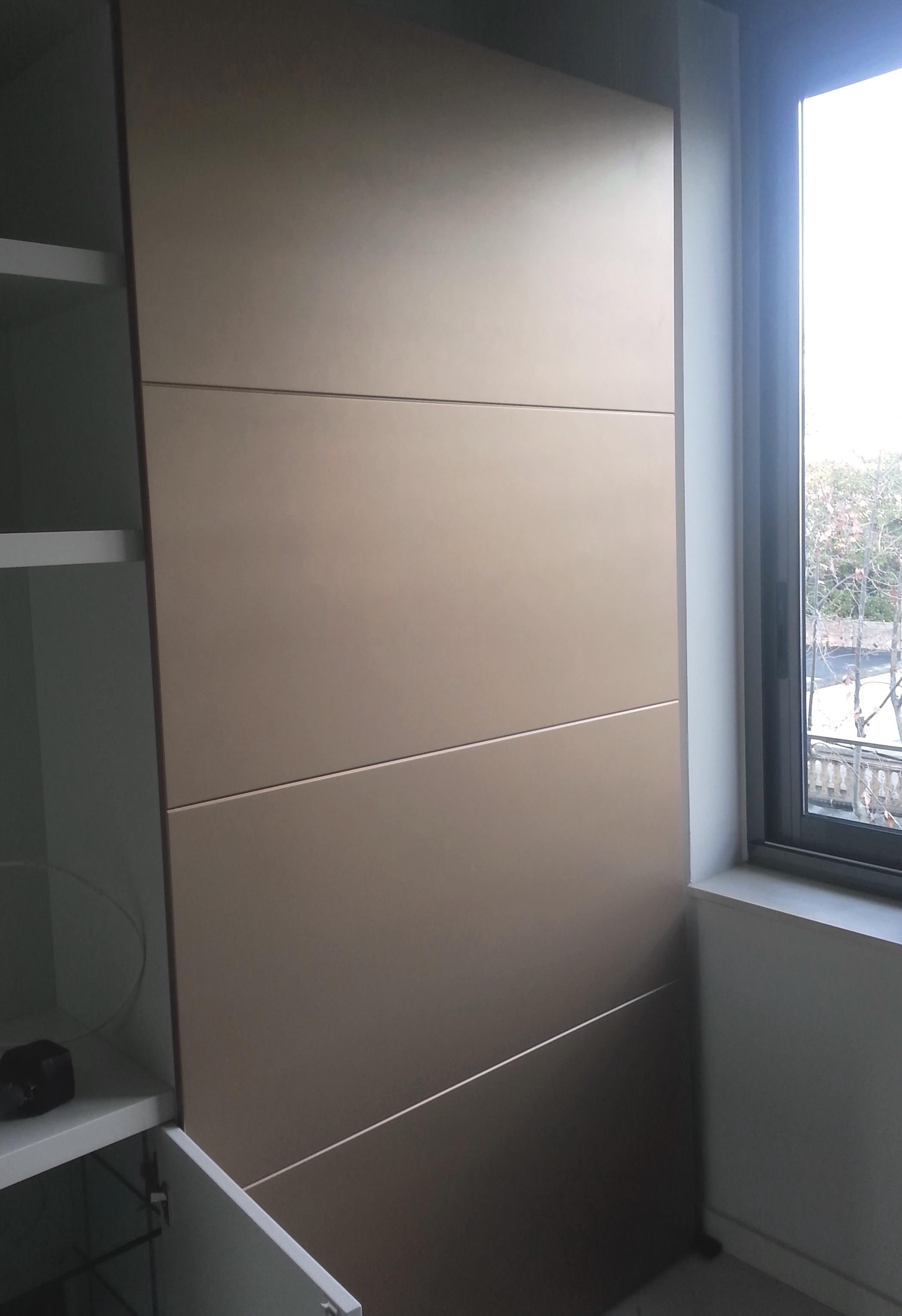 puerta-corredera-lacada Publicado el 28 enero, 2014 a 2097 × 3057 en Armarios-Distribución Detalle puerta corredera lacada. Ribetes en forma pico de gorrión (5mm). Lacada en color champan metalizado